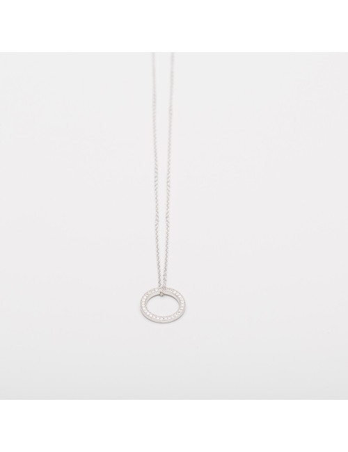 Colgante de plata. Diseño de forma circular y mini circonitas en tono transparente