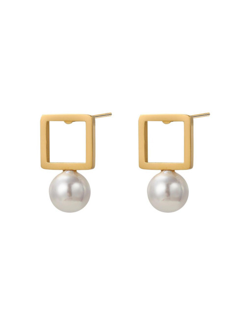 PENDIENTE ACERO CUADRADO CON PERLA