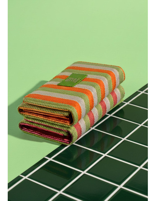 Diseño de líneas de color: verde + naranja / verde + rosa fucsia.