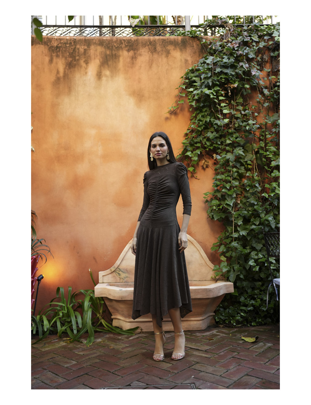 El Vestido Clara es un vestido de invitada confeccionado en tejido punto calado, que destaca por su drapeado central, largo midi y falda con picos, combinando elegancia y comodidad. La cremallera en la espalda asegura un ajuste perfecto, mientras que el forro interno aporta confort durante todo el evento.