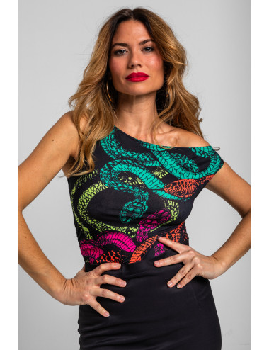TOP ASIMÉTRICO NEGRO Y SERPIENTE - VENENO
