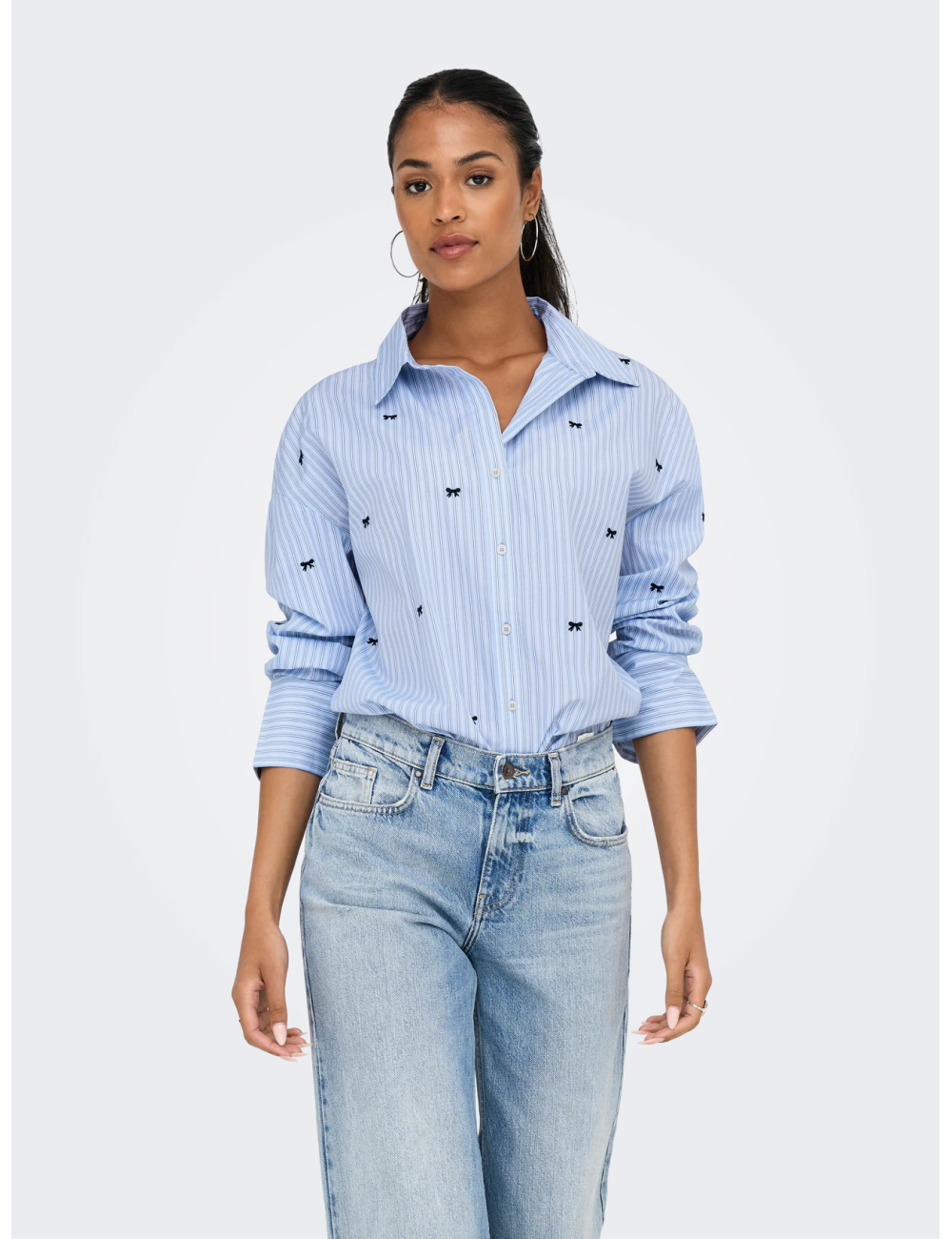 Completa tu armario con una camisa elegante. Combínala con unos jeans y tus zapatos favoritos: un look a la moda tanto para el trabajo como para el tiempo libre. Los tejidos se crean entrelazando dos o más hilos, lo que consigue un acabado clásico. - Artículo : Camisa - Cuello : Cuello de camisa - Manga : Manga larga - Puños : Puños abotonados - Cierre : Cierre de botones - Detalles : Detalles de bordado - Corte : Corte oversized