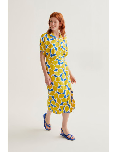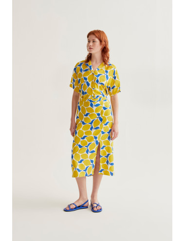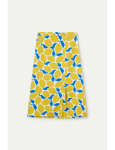 Falda midi con estampado limoncello. Cintura fija elástica de tiro alto. Ligera abertura lateral. La modelo mide 175 cm y lleva la talla S.