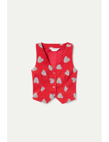 Chaleco de tejido 98% de algodón elástico con estampado harmony red. Escote pico y sin mangas. Cierre frontal con botones de color rojo.Forro interior. La modelo mide 173 cm y lleva la talla S.