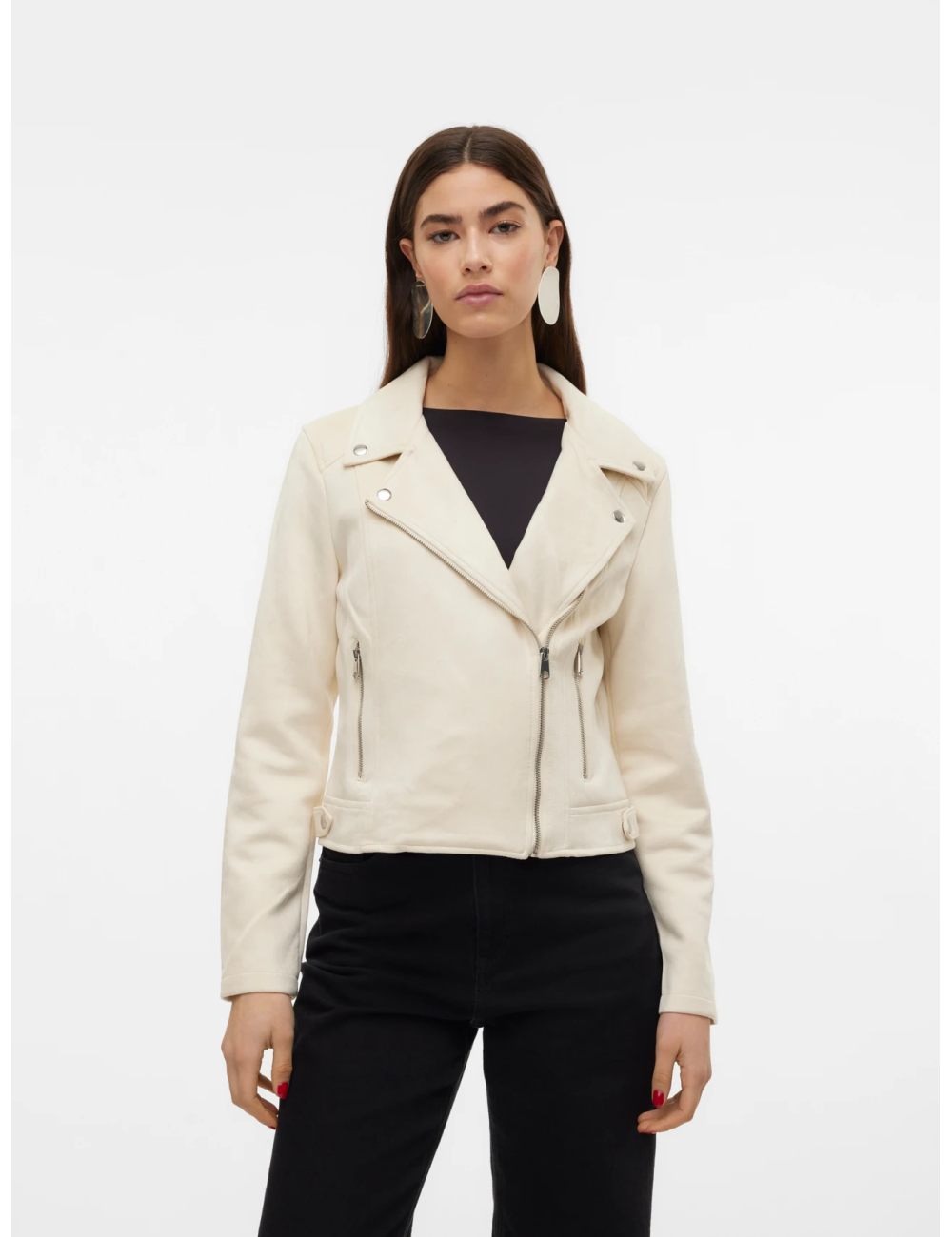 Para esas temporadas con un tiempo tan imprevisible. La chaqueta perfecta para la primavera es aquella a la que puedes recurrir en las temporadas de entretiempo. Esta chaqueta es ideal para los días en los que aún hace frío, pero no lo suficiente como para ponerse una chaqueta gruesa de invierno.. - Artículo : Chaqueta - Cuello : Cuello tipo biker - Manga : Manga larga - Cierre : Cierre de cremallera - Bolsillos : Bolsillos delanteros - Largo/talla : Corto - Forro : Sin forro - Detalles : Detalle de botón, Detalle de cremallera