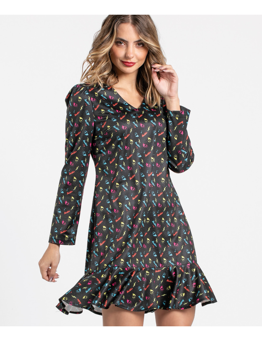 VESTIDO CORTO CON VOLANTES ESTAMPADO SEX PISTOLS